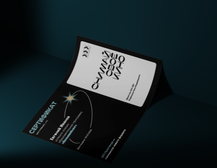 - в команде снимем итоговый проект: короткометражный фильм, рекламный ролик, музыкальный клип или арт-видео.
